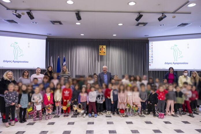 Περισσότερα από 80 παιδιά του 5ου Νηπιαγωγείου Αμαρουσίου, επισκέφθηκαν τον Δήμαρχο Αμαρουσίου Θεόδωρο Αμπατζόγλου, σήμερα, Παρασκευή 3 Απριλίου 2026, παραμονή του Σαββάτου του Λαζάρου, προκειμένου να ψάλλουν τα «Κάλαντα του Λαζάρου».