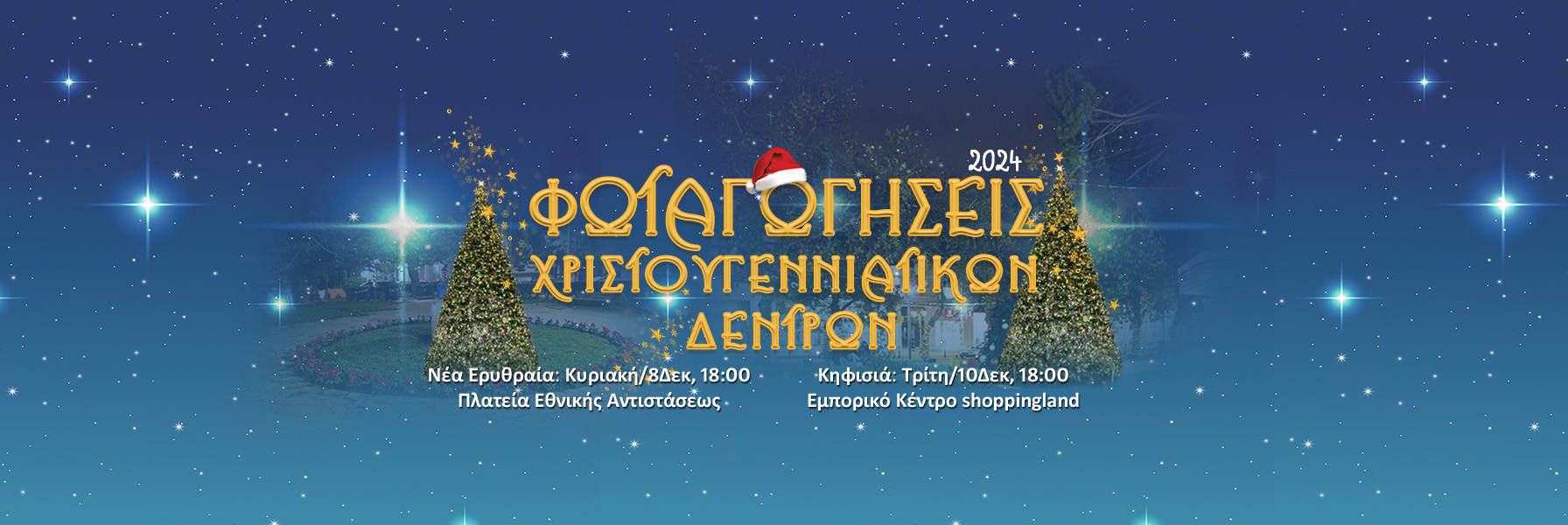 Ο Δήμος Κηφισιάς σας προσκαλεί στην επίσημη έναρξη των Χριστουγεννιάτικων εκδηλώσεων με τις φωταγωγήσεις των Χριστουγεννιάτικων Δέντρων σε Ν. Ερυθραία και Κηφισιά.