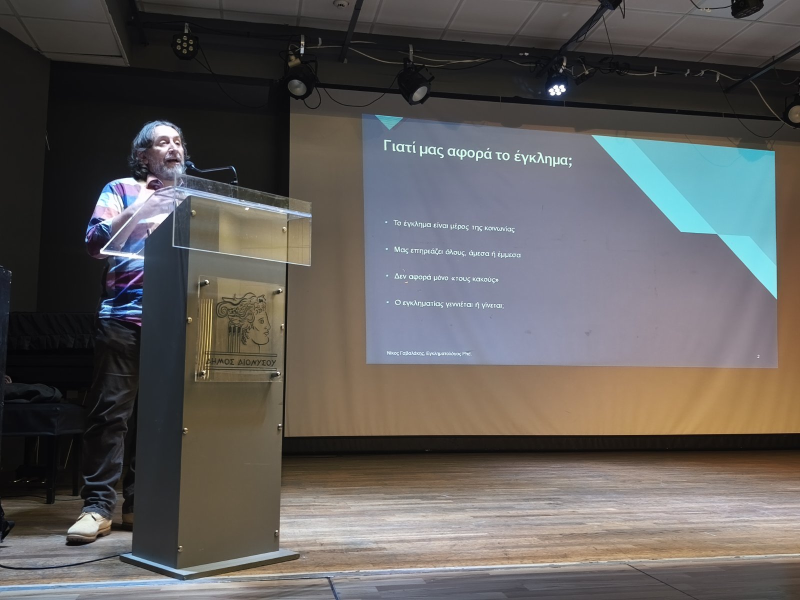 Αρχική ΓΕΙΤΟΝΙΚΟΙ ΔΗΜΟΙ ΔΗΜΟΣ ΔΙΟΝΥΣΟΥ Ανοιχτό Δημοτικό Πανεπιστήμιο: Ομιλία για την Εγκληματολογία από τον Ν. Γαβαλάκη