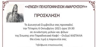 Απόψε στις 7:30 μμ η εκδήλωση της Ένωσης Πελοποννησίων Αμαρουσίου στην...