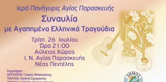 Συναυλία με Αγαπημένα Ελληνικά Τραγούδια – Τρίτη 26 Ιουλίου...