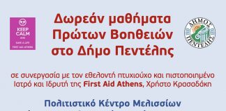 Δωρεάν μαθήματα πρώτων βοηθειών στο Δήμο Πεντέλης – Τετάρτη 15/2 από...