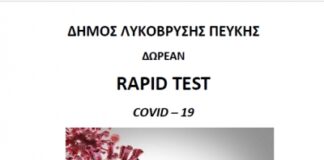 Δωρεάν rapid tests από τον Δήμο Λυκόβρυσης Πεύκης σε συνεργασία με...