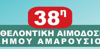 38η Εθελοντική Αιμοδοσία στο Δήμο Αμαρουσίου, με την τήρηση όλων των...