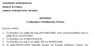 Δήμος Λυκόβρυσης – Πεύκης: Συνεχίζει να στηρίζει εμπράκτως την Ένωση Γονέων