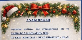 Κλειστά τα ΚΕΠ του Δήμου Κηφισιάς το Σάββατο 3/1/2026