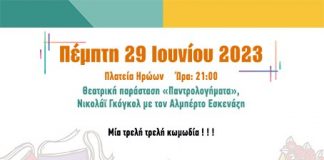 Θεατρική παράσταση «Παντρολογήματα» Νικολάι Γκογκολ με τον Αλμπέρτο Εσκενάζη, Πέμπτη 29...