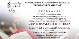 Το 43ο Χορωδιακό Φεστιβάλ, 23 & 24 Νοεμβρίου στο Δημαρχείο...