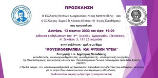 Πρόσκληση: Ομίλια με θέμα “Μουσικοθεραπεία και ψυχική υγεία” τη Δευτέρα 13...