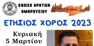 Eτήσιος χορός της Ένωσης Κρητών Αμαρουσίου «Ο Κρηταγενής Ζευς» στις 5...