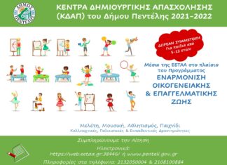 Λειτουργία Κέντρων Δημιουργικής Απασχόλησης Παιδιών στο Δήμο Πεντέλης