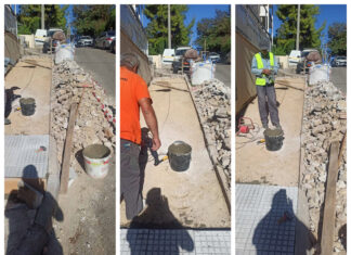 Επισκευή πεζοδρομίων στη γωνία των οδών Πρεβέζης και Καποδιστρίου, στην Πεύκη
