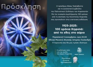 Πρόσκληση σε εκδήλωση του Πολιτιστικού Συλλόγου Κηφισιωτών, 5/12 στο Εθνικό Μουσείο Φυσικής Ιστορίας Γουλανδρή