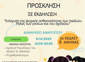 Ενημερωτική Εσπερίδα για την Ψυχική Ανθεκτικότητα των Παιδιών | Τρίτη 9 Δεκεμβρίου 2025, 18:00-20:00...