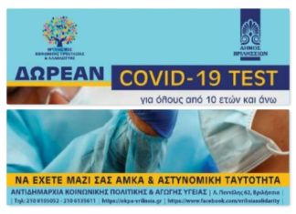 👉Δωρεάν covid test για όλους τους κατοίκους των Βριλησσίων, την Παρασκευή 18 Ιουνίου 2021,...