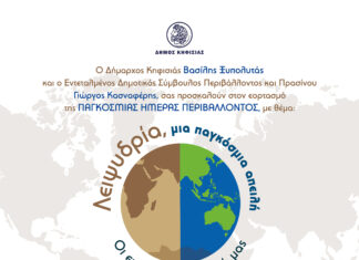 Ο Δήμαρχος Κηφισιάς Βασίλης Ξυπολυτάς και ο Εντεταλμένος Δημοτικός Σύμβουλος Περιβάλλοντος και Πρασίνου Γιώργος Κασναφέρης σας προσκαλούν στον εορτασμό της ΠΑΓΚΟΣΜΙΑΣ ΗΜΕΡΑΣ ΠΕΡΙΒΑΛΛΟΝΤΟΣ, με θέμα:...