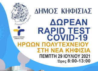 ΝΕΑ ΔΡΑΣΗ ΔΩΡΕΑΝ RAPID TESTS