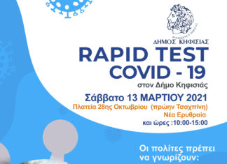 ΝΕΑ ΔΡΑΣΗ ΔΩΡΕΑΝ RAPID COVID TESTS ΣΤΟΝ ΔΗΜΟ ΚΗΦΙΣΙΑΣ ΑΠΟ ΤΟΝ ΕΟΔΥ