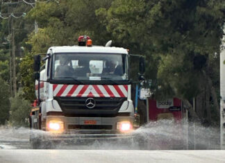 Πλύσιμο αύλειων χώρων στα σχολεία και των κύριων οδών του οδικού δικτύου στην Κάτω...