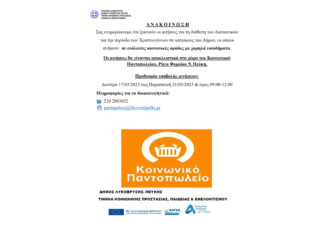 Ο Δήμος Λυκόβρυσης-Πεύκης, μέσω του Κοινωνικού Παντοπωλείου, ανακοινώνει τη διαδικασία υποβολής αιτήσεων για τη χορήγηση διατακτικών επιταγών...