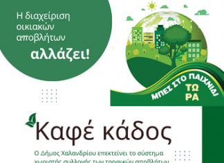 Νέα εποχή στη διαχείριση βιοαποβλήτων – Δίκτυο καφέ κάδου και στον Συνοικισμό Χαλανδρίου Στην περιοχή του Συνοικισμού και το Πολύδροσο, αμέσως μετά, επεκτείνεται...