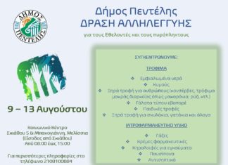Ο Δήμος Πεντέλης με σκοπό τη στήριξη των πληγέντων πολιτών από τις πρόσφατες πυρκαγιές στους όμορους Δήμους, αλλά και των Εθελοντών που εξακολουθούν την...
