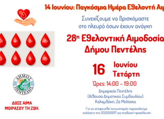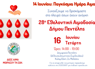 Ο Δήμος Πεντέλης τιμώντας την Παγκόσμια Ημέρα Αιμοδοσίας και μένοντας πιστός στις δεσμεύσεις του και πάντοτε αρωγός των Δημοτών του, τηρώντας το πρόγραμμα κοινωνικής...