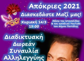 Απόκριες 2021: Συναυλία Αλληλεγγύης του Δήμου Πεντέλης με το Γεράσιμο Ανδρεάτο. Συνδεθείτε την Κυριακή...