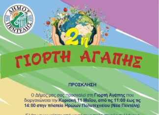 ‘Γιορτή Αγάπης’ Δήμου Πεντέλης – Κυριακή 11/5 – Πλ. Ηρώων Πολυτεχνείου Νέας Πεντέλης