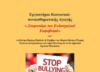 Ψυχοεκπαιδευτική Δράση για τους μαθητές του 4ου Δημοτικού Σχολείου Μελισσίων με θέμα τον ενδοσχολικό...