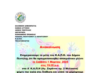 Ο Δήμος Πεντέλης και το Τμήμα Εσόδων της Διεύθυνσης Οικονομικών Υπηρεσιών ενημερώνει τους ιδιοκτήτες ακινήτων ότι, λόγω αδυναμίας επικοινωνίας των παρόχων ηλεκτρικής ενέργειας με...