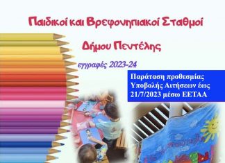 Προς τους κατοίκους του Δήμου Πεντέλης (Γονείς ή Κηδεμόνες) που επιθυμούν να εγγράψουν ή να επανεγγράψουν τα νήπιά τους στη δύναμη των Παιδικών και...