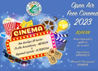 Βραδιές δωρεάν κινηματογραφικών προβολών και φέτος από το Δήμο Πεντέλης από 26/6 έως 7/9....