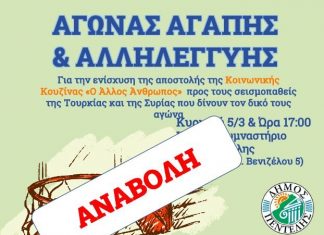 Αναβολή της εκδήλωσης παρουσίασης έργου της Δημάρχου για τις 12/3