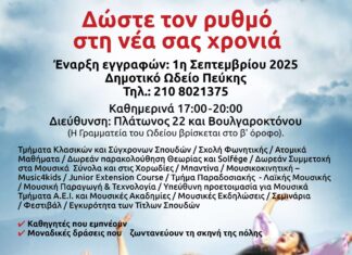Δώστε τον ρυθμό στη νέα σας χρονιά!!!! Ο Δήμος Λυκόβρυσης – Πεύκης και το Δημοτικό Ωδείο Πεύκης ανακοινώνουν την έναρξη των εγγραφών για το νέο...