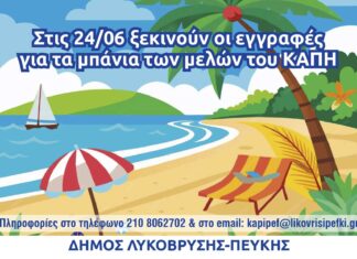 Δήμος Λυκόβρυσης - Πεύκης Δελτία Τύπου 14 Ιούλιος 2025 Εμφανίσεις: 38 Με μεγάλη επιτυχία ολοκληρώθηκαν τα θαλάσσια μπάνια για την πρώτη ομάδα των μελών ΚΑΠΗ Λυκόβρυσης-Πεύκης, στην εγκεκριμένη...