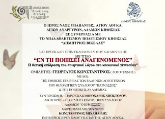 ΟΜΙΛΙΑ ΤΟΥ ΠΟΙΗΤΟΥ ΚΩΝΣΤΑΝΤΙΝΟΥ ΓΕΩΡΓΑΤΟΥ ΣΤΟ ΠΟΛΙΤΙΣΤΙΚΟ ΚΕΝΤΡΟ “ΑΔΑΜΩΝ” ΚΗΦΙΣΙΑΣ, “ΜΕΛΙΝΑ ΜΕΡΚΟΥΡΗ”
