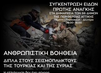 Συγκέντρωση ειδών πρώτης ανάγκης στους Δήμους την Πέμπτη 9, την Παρασκευή 10 και την Δευτέρα 13 Φεβρουαρίου, από τις 8 το πρωί, έως τις...