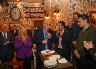 Εγκάρδιες ευχές με τα μέλη και τους φίλους της Ένωσης Πελοποννησίων Αμαρουσίου αντάλλαξε ο Δήμαρχος Αμαρουσίου Θεόδωρος Αμπατζόγλου, στην εκδήλωση για την κοπή της...