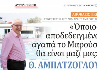 Θεόδωρος Αμπατζόγλου στην εφημερίδα “Χτύπος”: «Όποιος αποδεδειγμένα αγαπά το Μαρούσι θα είναι μαζί μας»