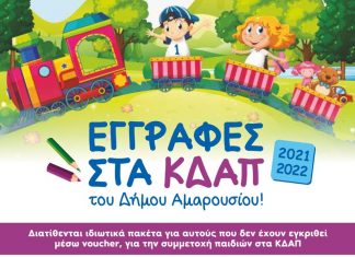 Ξεκίνησαν οι εγγραφές στα ΚΔΑΠ του Δήμου Αμαρουσίου για την περίοδο 2021-2022, διατίθενται ιδιωτικά...