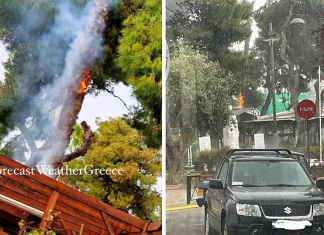 Μαρούσι: Κεραυνός έπεσε δίπλα σε καφετέρια και ένα δέντρο άρπαξε φωτιά