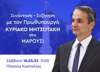 Συνάντηση – Συζήτηση με τον Πρωθυπουργό Κυριάκο Μητσοτάκη στις 18 Μαρτίου 2023 στην Πλατεία Κασταλίας (Μαρούσι)