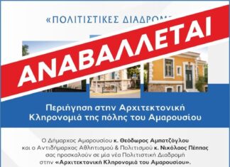 Αναβάλλεται λόγω καιρικών συνθηκών η προγραμματισμένη για 16/11 “Περιήγηση στην Αρχιτεκτονική Κληρονομιά της πόλης...