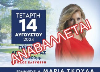 Αναβάλλεται μέχρι νεοτέρας το γλέντι με την Μαρία Σκουλά και το συγκρότημά της, που ήταν προγραμματισμένο για την Τετάρτη 14 Αυγούστου 2024 για τον...