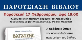 Παρουσίαση του βιβλίου “ΒΑΤΑΤΖΗΣ Ο ΠΑΤΕΡΑΣ ΤΩΝ ΕΛΛΗΝΩΝ” του Κ. Γ....