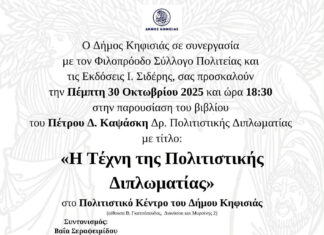 Το βιβλίο του Δ. Καψάσκη “Η Τέχνη της Πολιτιστικής Διπλωματίας παρουσιάζεται στις 30/10 στο...