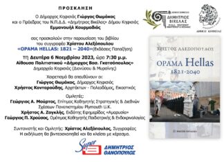 ΠΑΡΟΥΣΙΑΣΗ ΒΙΒΛΙΟΥ του συγγραφέα Χρίστου Αλεξόπουλου «ΟΡΑΜΑ HELLAS: 1821 – 2040»