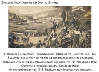 ΕΠΕΤΕΙΑΚΗ ΕΚΔΗΛΩΣΗ Μνήμης για την απελευθέρωση της Χίου 13/11