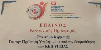 ΒΡΑΒΕΥΣΗ ΤΟΥ ΚΕΠ ΥΓΕΙΑΣ ΔΗΜΟΥ ΚΗΦΙΣΙΑΣ